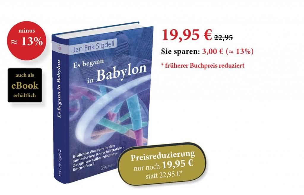 Jan Erik Sigdell beschäftigt sich in seinem neuesten Buch „Es begann in Babylon“ mit dem, was Schulwissenschaftler, kirchliche Theologen und jüdische Rabbiner nicht hören wollen bzw. leugnen: Antworten auf die Fragen, wer wir sind und woher wir kommen. Keilschrifttafeln aus Babylonien, Sumerien etc. enthalten eine ausführliche Schöpfungsgeschichte, die nicht nur wie bei Ethnologen und Sprachforschern lange bekannt, auffallend mit der Bibel übereinstimmt sondern nahe legt, dass die diese nur eine hebräifizierte Kurzfassung der babylonischen ist.